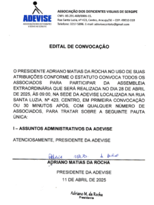 O PRESIDENTE ADRIANO MATIAS DA ROCHA NO USO DE SUAS ATRIBUIÇÕES CONFORME O ESTATUTO CONVOCA TODOS OS ASSOCIADOS PARA PARTICIPAR DA ASSEMBLEIΑ EXTRAORDINÁRIA QUE SERÁ